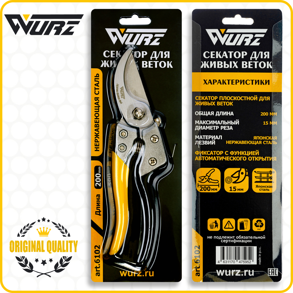 / 6102 Секатор для живых веток с автоматическим фиксатором 200мм Wurz