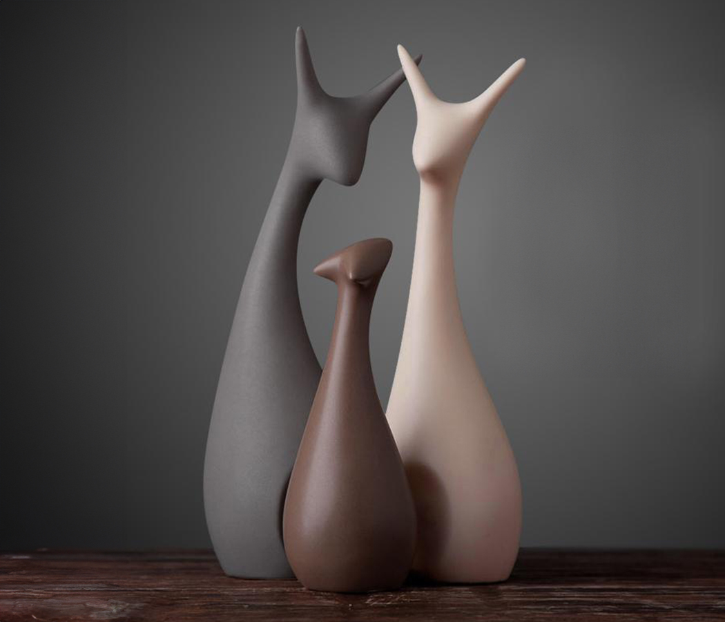 Количество товара Набор декоративных статуэток 3 шт., керамика, цвет черный/коричневый/розовый, 25*7; 25*7; 15*6 см.