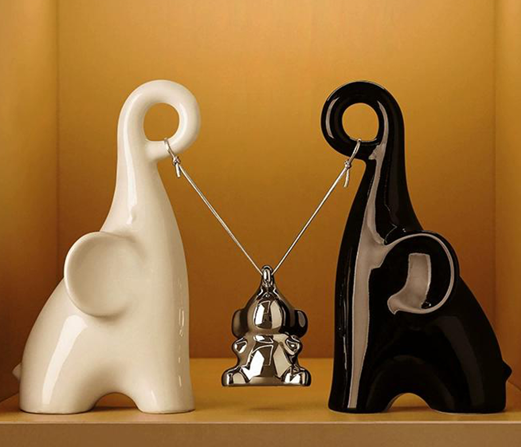 / Набор декоративных статуэток “Слоны” 3 шт., керамика, цвет черный/белый/серебро, 11*9,5*20; 11*9,5*2