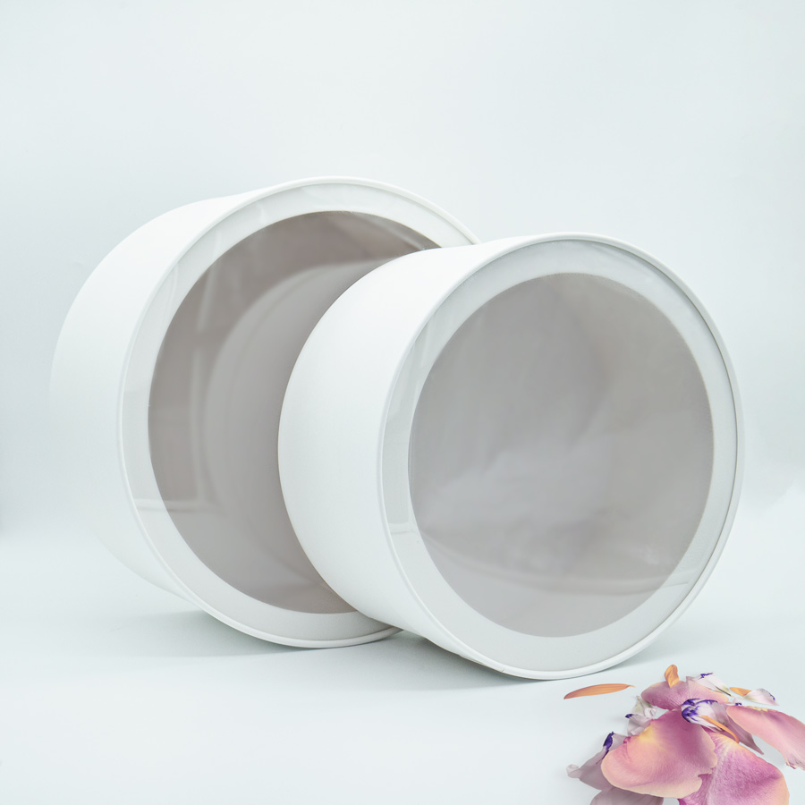 / Набор коробок 2в1 шайба H15хD30 / H13хD25см, с окошком, завальц.край, белый
