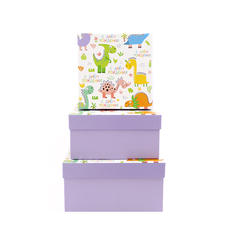 Набор коробок 3 в 1 “Динозаврики” / квадрат / 20*20*10,5 / 18*18*9 / 15,5*15,5*7,5 см