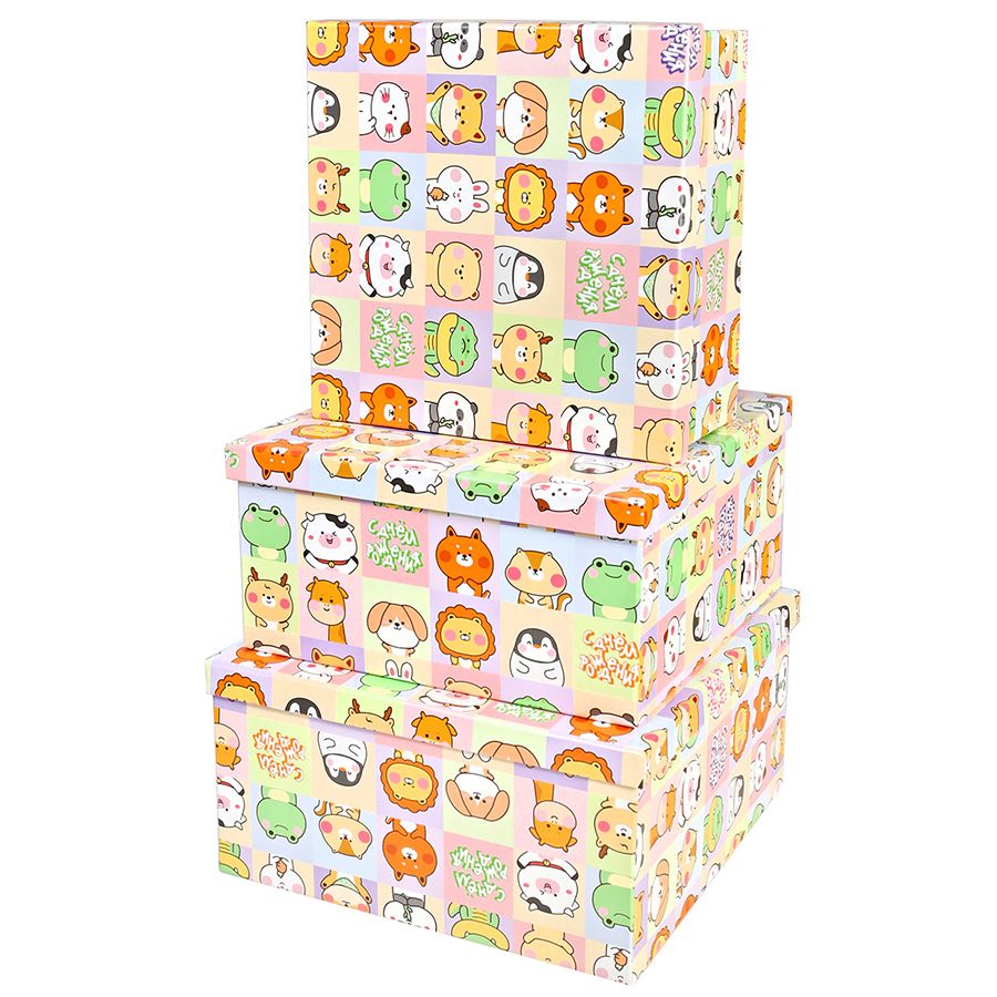Набор коробок 3в1 квадрат 19,5х19,5х11 / 17,5х17,5х10 / 15,5х15,5х9см, Кавайчики