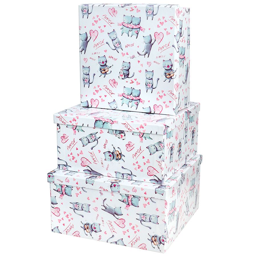 Набор коробок 3в1 квадрат 19,5х19,5х11 / 17,5х17,5х10 / 15,5х15,5х9см, Влюбленные котики