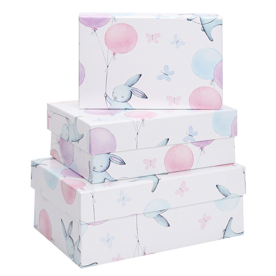 Набор коробок 3в1 прямоугольник 19х12х7,5 / 17х11х6 / 15х10х5см, Зайка на воздушном шаре