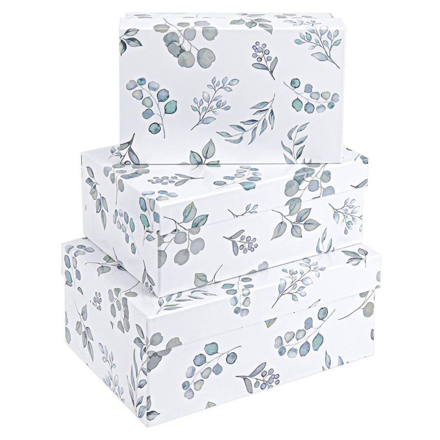 Количество товара Набор коробок 3в1 прямоугольник 23х16х9,5 / 21х14х8 / 19х12х6,5см, Акварель листья