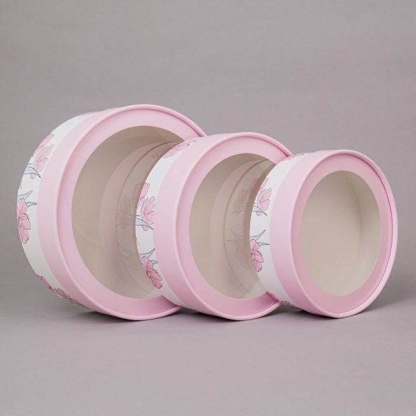 Набор коробок 3в1 шайба H7хD21 / H6хD18 / H5хD16см, с окошком, завальц.край, Нежные цветы
