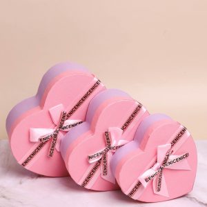 Коробка Сердце набор из 3шт 22х20х9см двухцветный с бантом розовый/сиреневый
