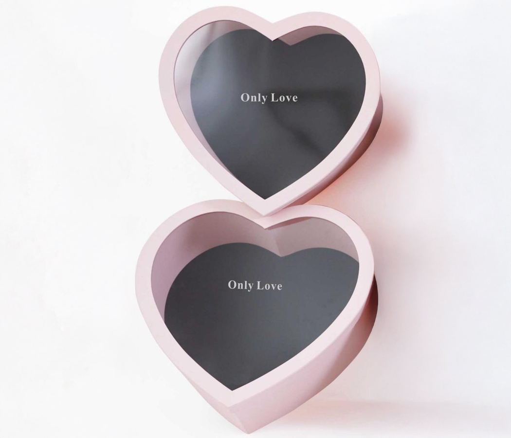 Набор коробок для цветов в виде сердца 46*46*18, 44*44*17 см, 2 шт., св.розовый