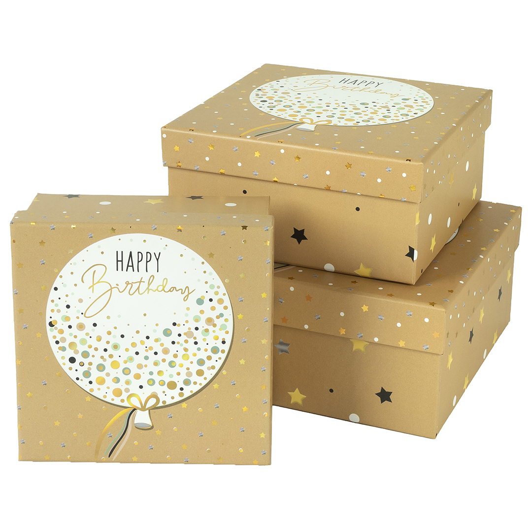 / Набор коробок С Днем Рождения (воздушный шар), Бежевый, 20*20*9,5 см, 3 шт. в упак.