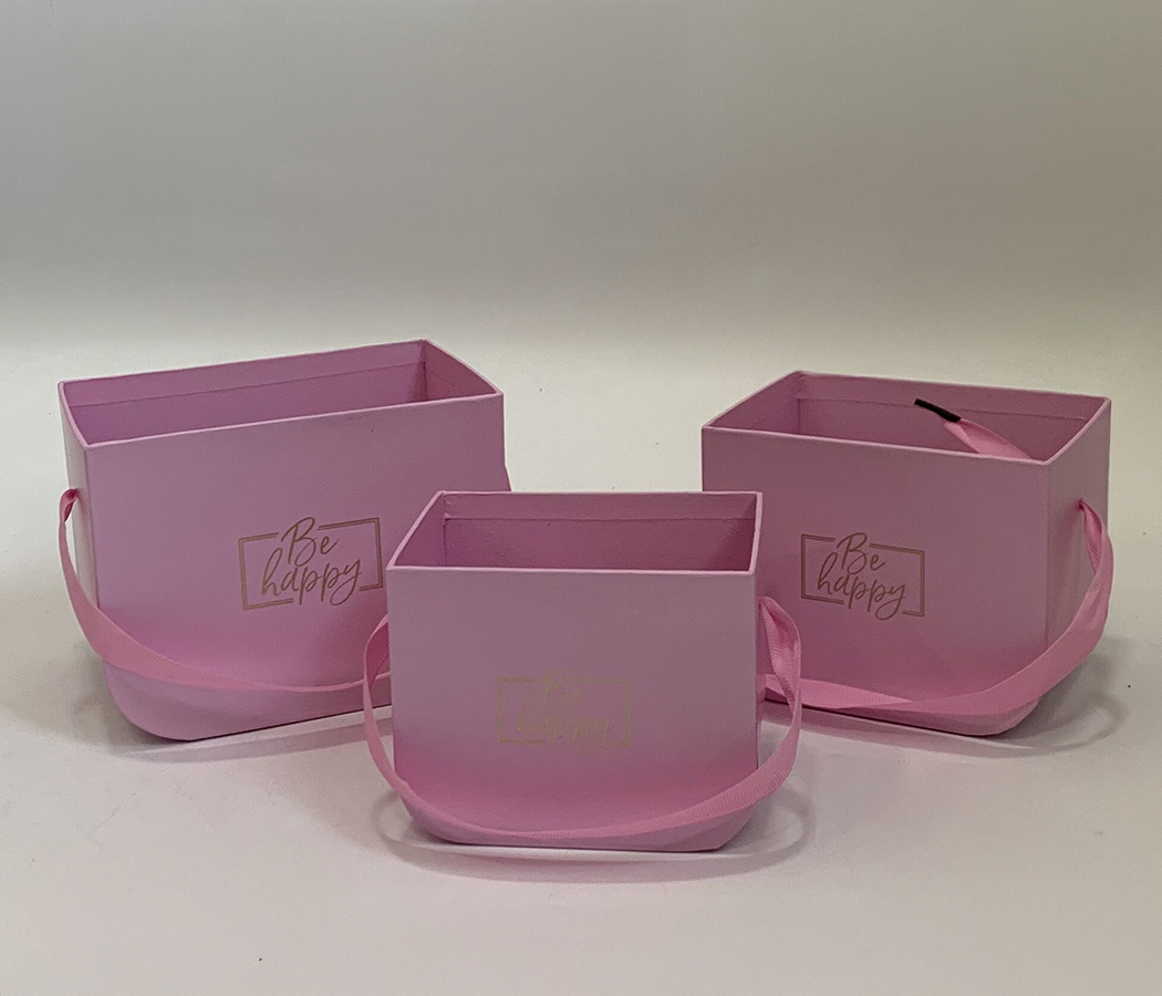/ Набор коробок под цветы Сумочки “Be happy” 16,5x12x12,5 см, 14x11x11,5 см, 12,5x9x10 см, 3 шт., розо