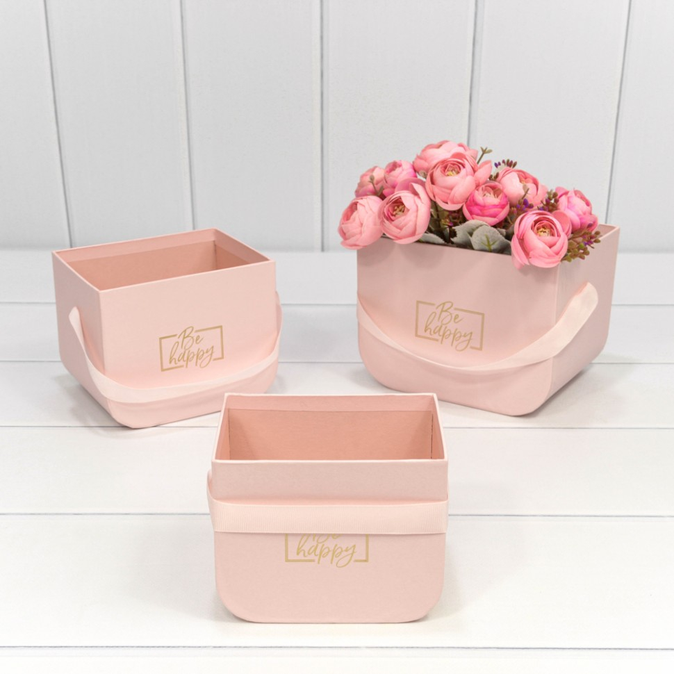 / Набор коробок под цветы Сумочки “Be happy” 16,5x12x12,5 см, 14x11x11,5 см, 12,5x9x10 см, 3 шт., св.р