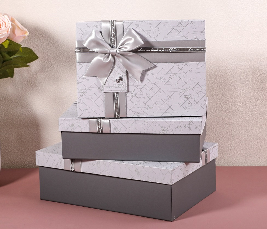 Набор коробок подарочных 22,5*16*9,5, 20*14*8, 17,5*12,5*6,5 см, 3 шт., св.серый