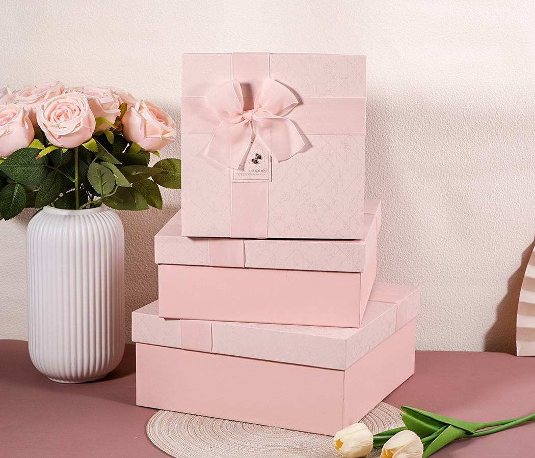 Набор коробок подарочных 27*27*11,5, 24*24*10, 20,5*20,5*8 см, 3 шт., св. розовый