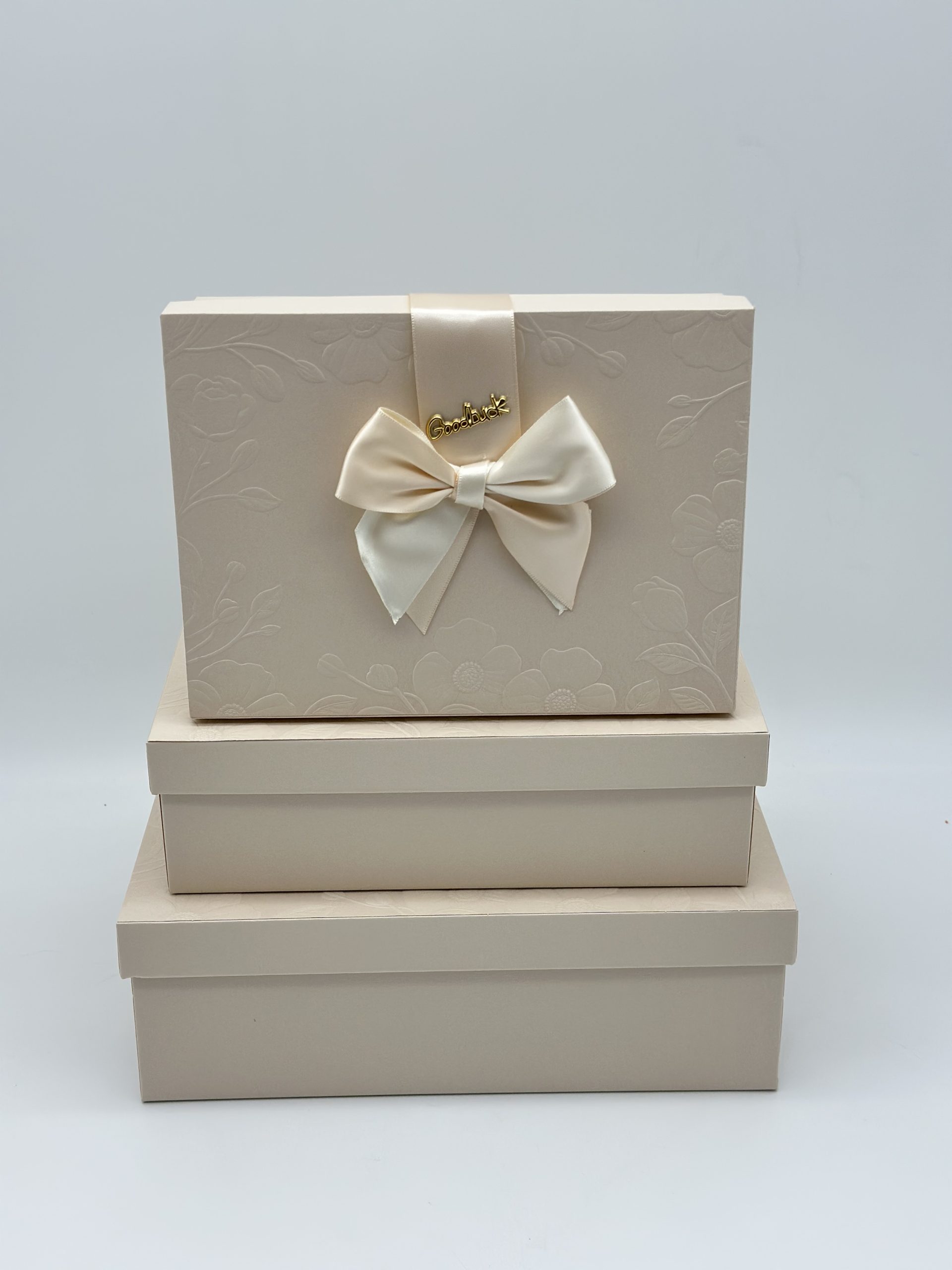 Набор коробок подарочных с бантиком 29*21*9,5, 26*19*8, 23*17*6,5, 3 шт., св.бежевый