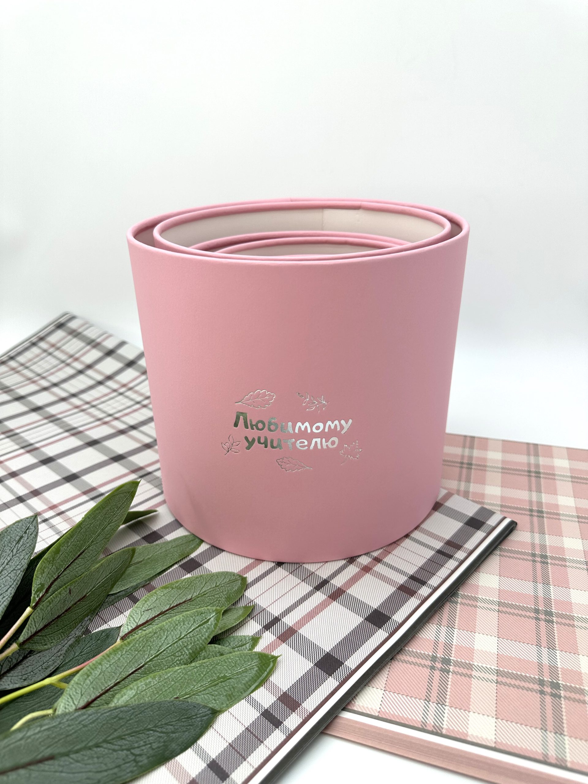 Набор коробок стандарт с серебряным тиснением “Любимому учителю”, с листьями, 5в1, (розовый) Россия