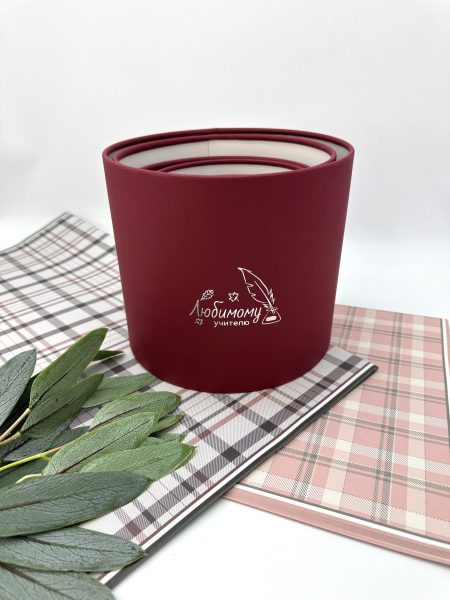 Набор коробок стандарт с серебряным тиснением “Любимому учителю”, с пером, 5в1, (бордовый) Россия