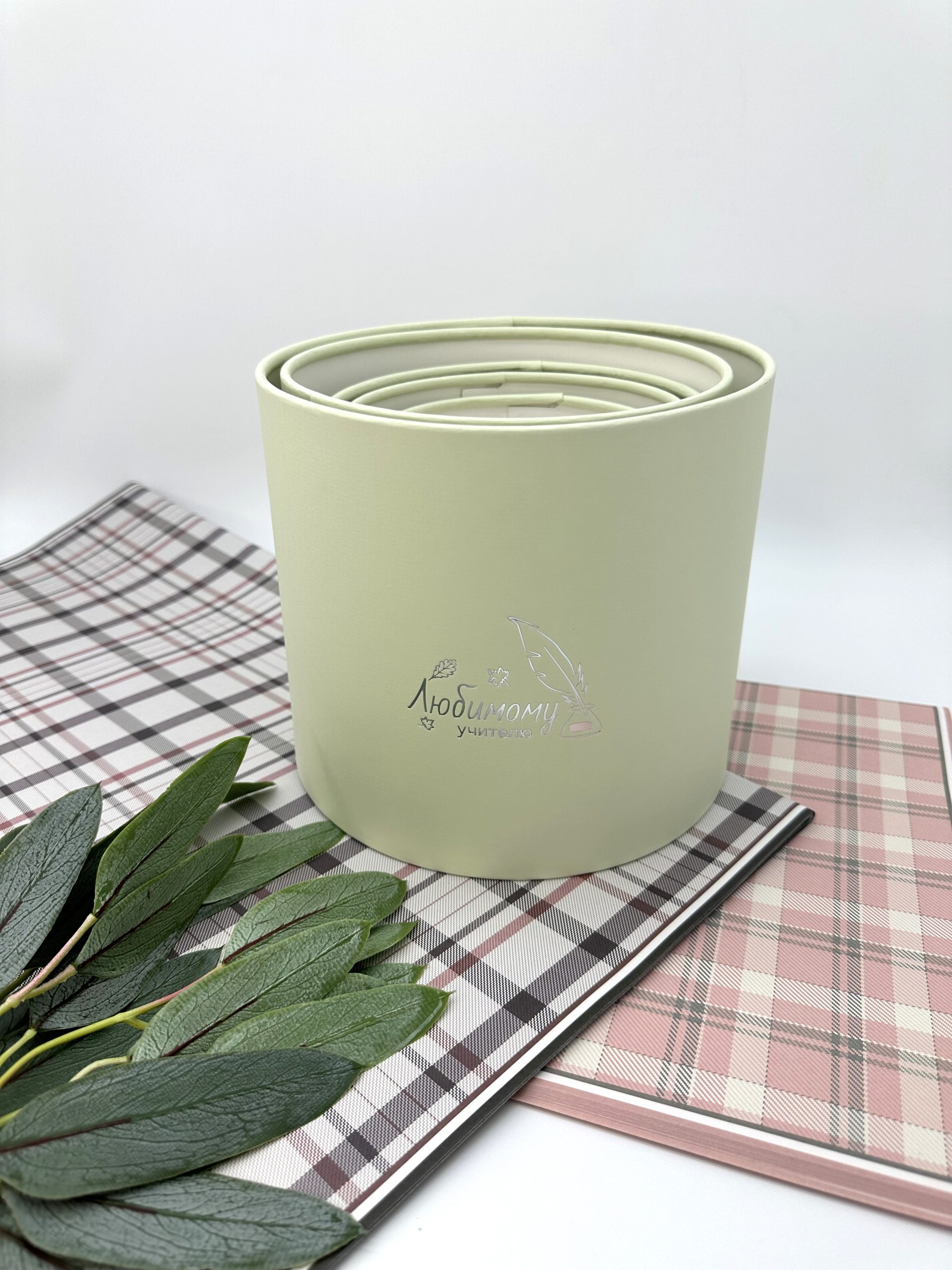 / Набор коробок стандарт с серебряным тиснением “Любимому учителю”, с пером, 5в1, (зеленый) Россия