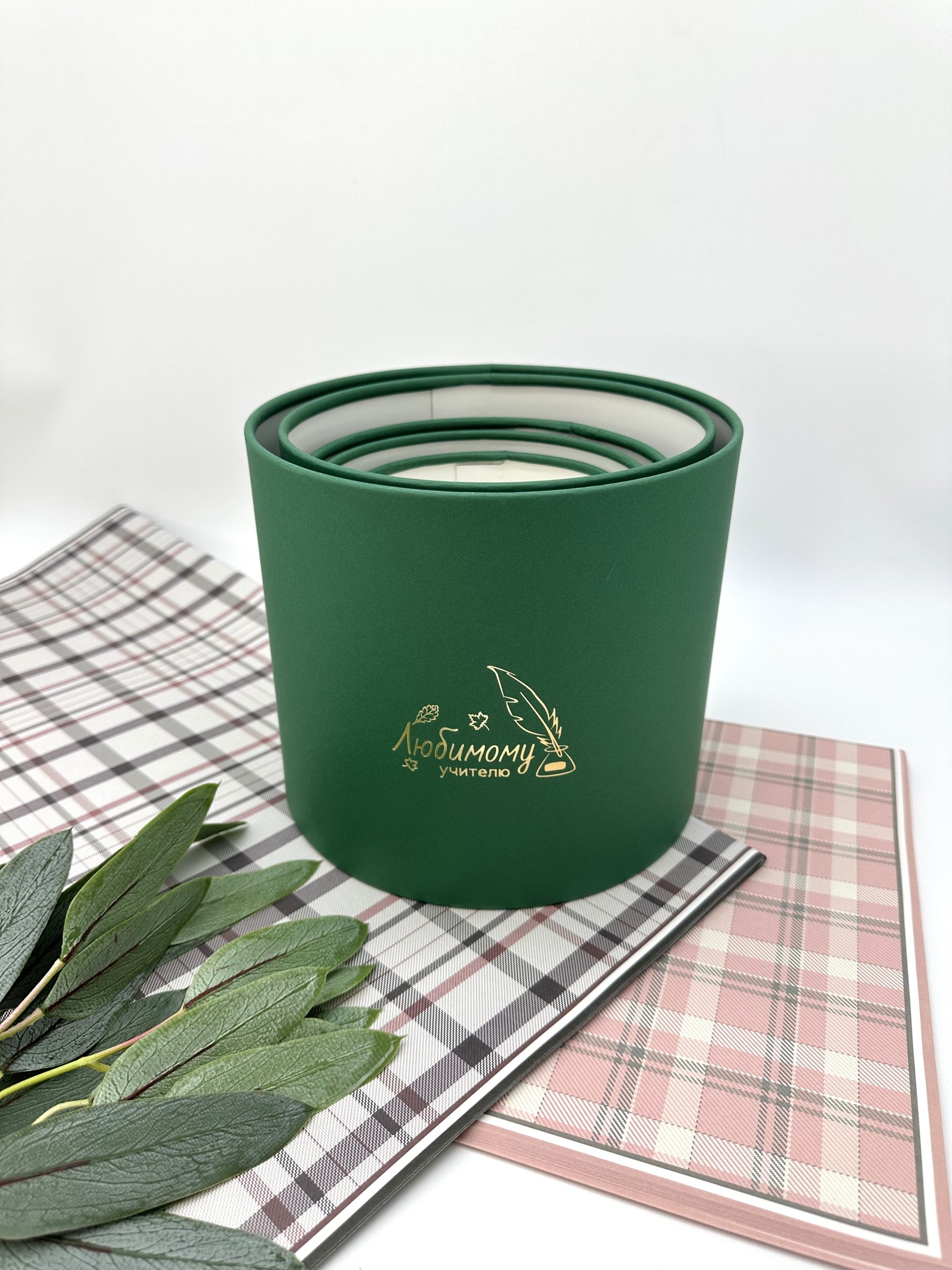 Количество товара Набор коробок стандарт с золотым тиснением "Любимому учителю", с пером, 5в1, (еловый) Россия