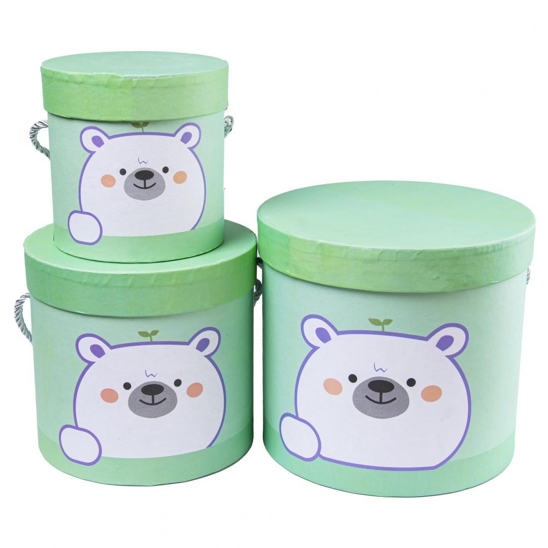 / Набор коробок “Тубус” 18.5*17, 16*15, 12*12см. Мишка на зелёном 3шт 9709