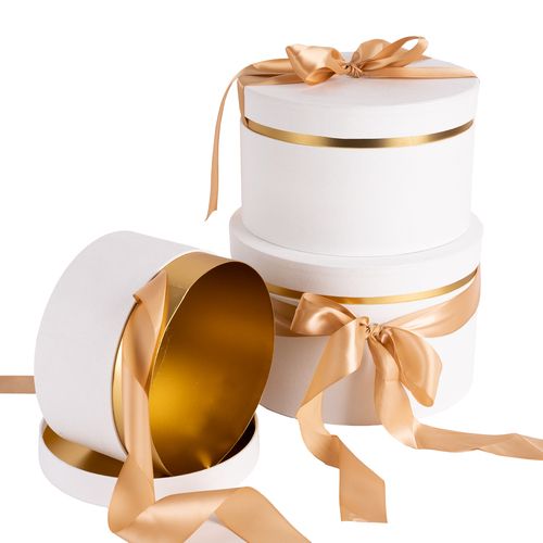 / Набор коробок “Тубус” 24*16, 22*14, 19*12 см. С бантом Белый (тканевая) 3 шт т.м12