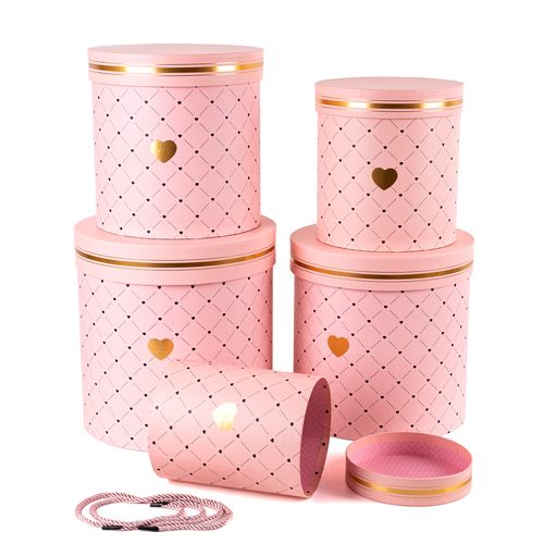 / Набор коробок “Тубус” 24*25, 23*23, 21*21, 18*19, 14*17 см. Сердечко Розовый 5 шт т.м 12