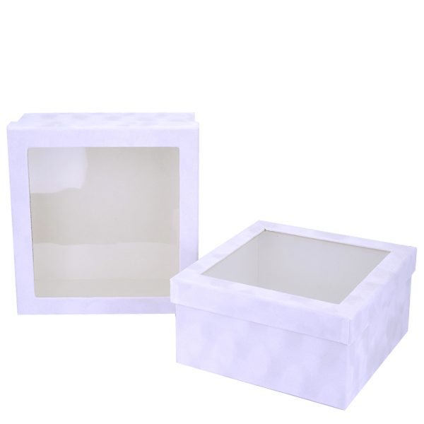 / Набор коробок “Квадрат” 25.6*11.9, 23.6*10.9см. Велюр с прозрачной крышкой Белый 2шт