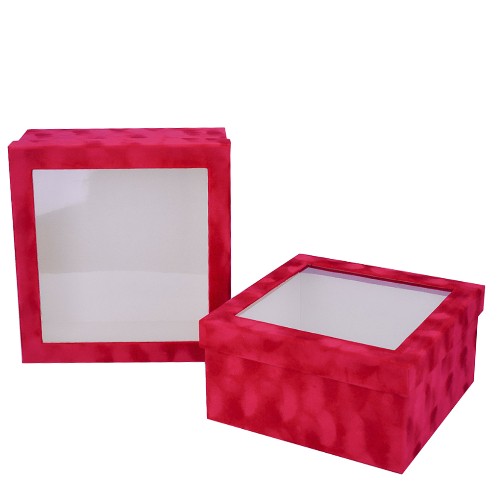 / Набор коробок “Квадрат” 25.6*11.9, 23.6*10.9см. Велюр с прозрачной крышкой Красный 2шт
