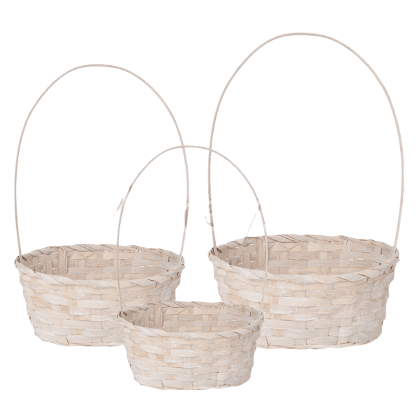 Набор корзин плетеных (бамбук), 22х18х10/34 см, 24х19х10/36 см, 27х21х10/38 см, 3 шт., белый