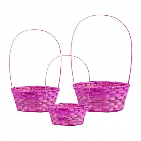 / Набор корзин плетеных (бамбук), 22х18xH10/34 см, 24х19xH10/36 см, 27х21xH10/38 см, 3 шт., розовый