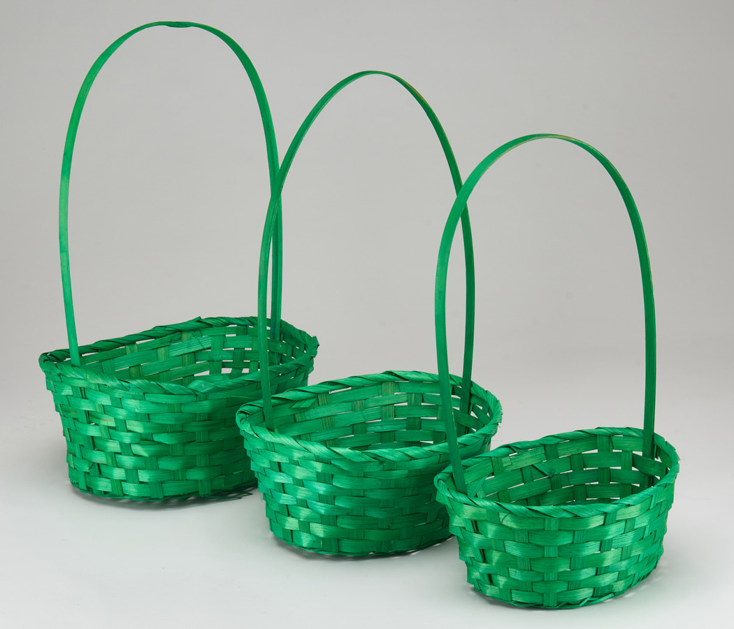 Набор корзин плетеных (бамбук), 22х18xH10/34 см, 24х19xH10/36 см, 27х21xH10/38 см, 3 шт., зеленый