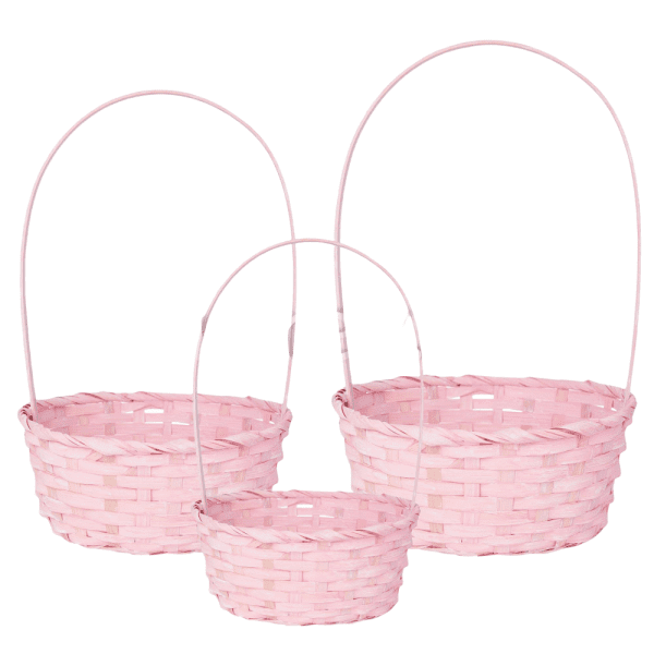 Набор корзин плетеных (бамбук), D16xH10/32 см, D18xH10/34 см, D21xH10/36 см, 3 шт., светло-розовый