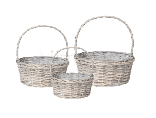 Количество товара Набор корзин плетеных (ива), 36х36х14/37 см / 30х30х12,5/32 см / 25х25х11/28 см, 3 шт., серый