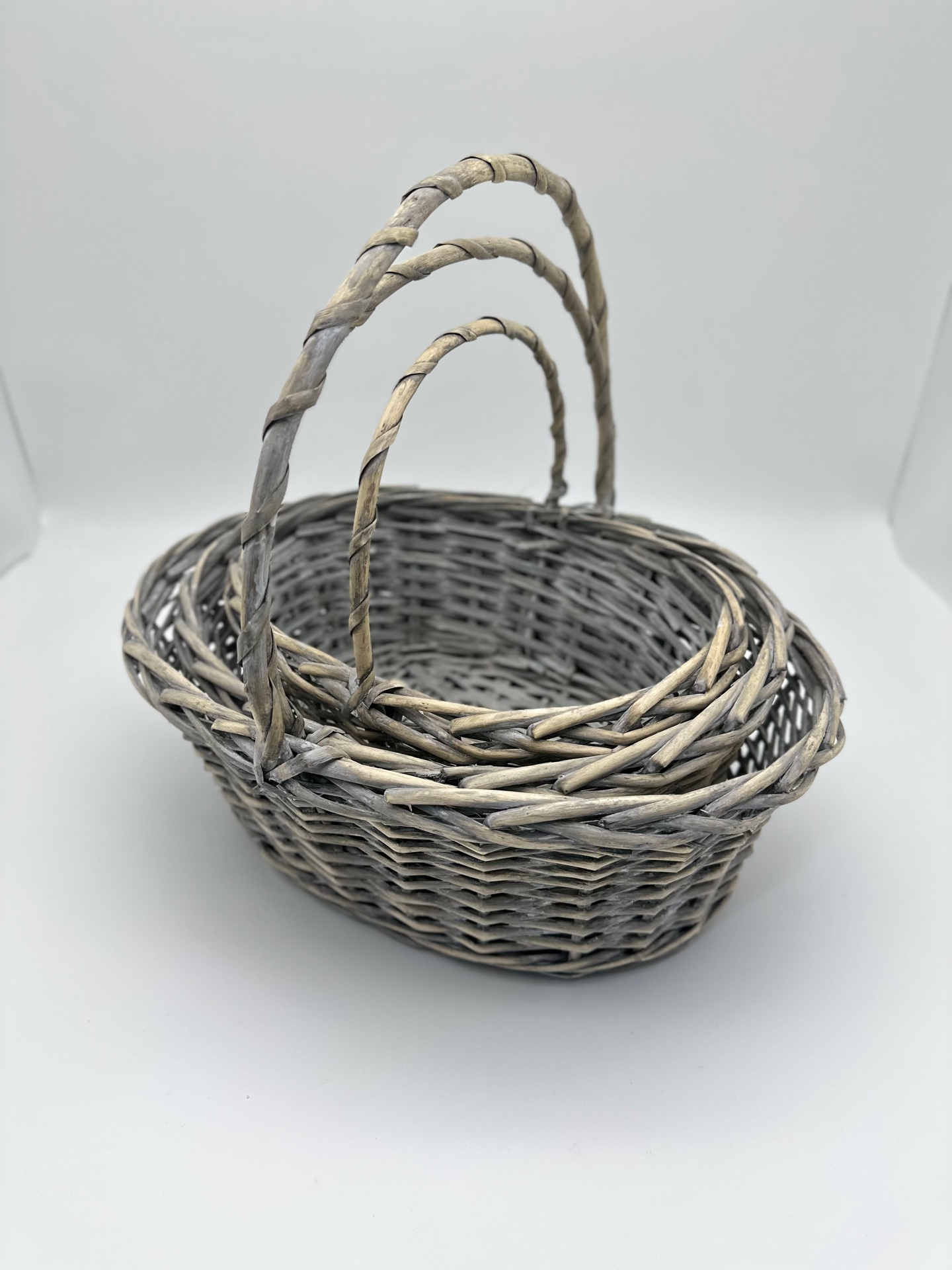Набор корзин плетеных (ива), 38х30хH14/35см, 33x25xH12.5/30см, 28x20xH11/25см, 3 шт., серый овал