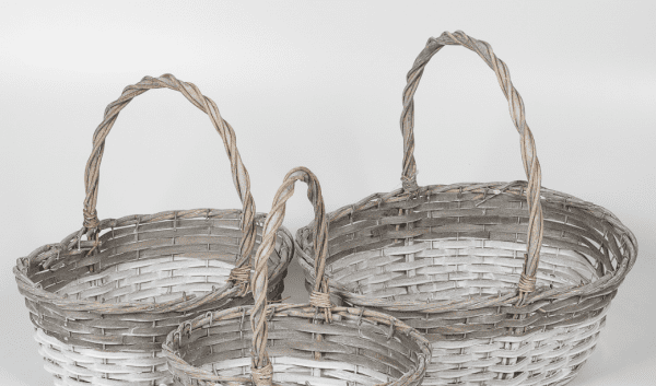 Набор корзин плетеных (ива), 39х30х15х37 см / 33х25х13,5х32 см / 27х20х12х27 см, 3 шт., серый с бел.
