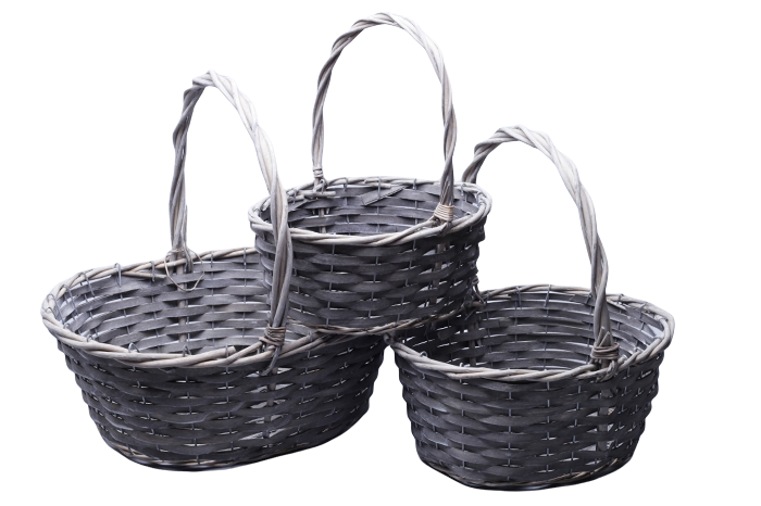 / Набор корзин плетеных (ива), 39х30х15х37 см / 33х25х13,5х32 см / 27х20х12х27 см, 3 шт., серый