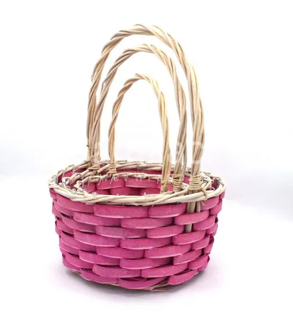 Набор корзин плетеных (ива), D29х15х39 см / D24х13х34 см / D19х11х29 см, 3 шт., розовый