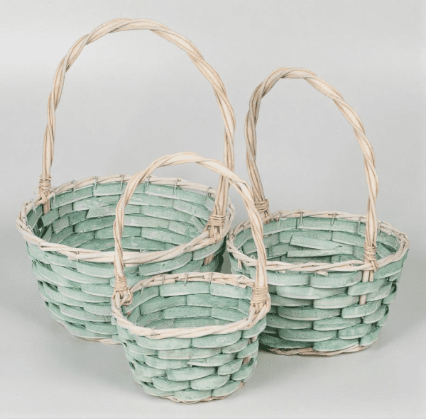 Набор корзин плетеных (ива), D29х15х39 см / D24х13х34 см / D19х11х29 см, 3 шт., зеленый