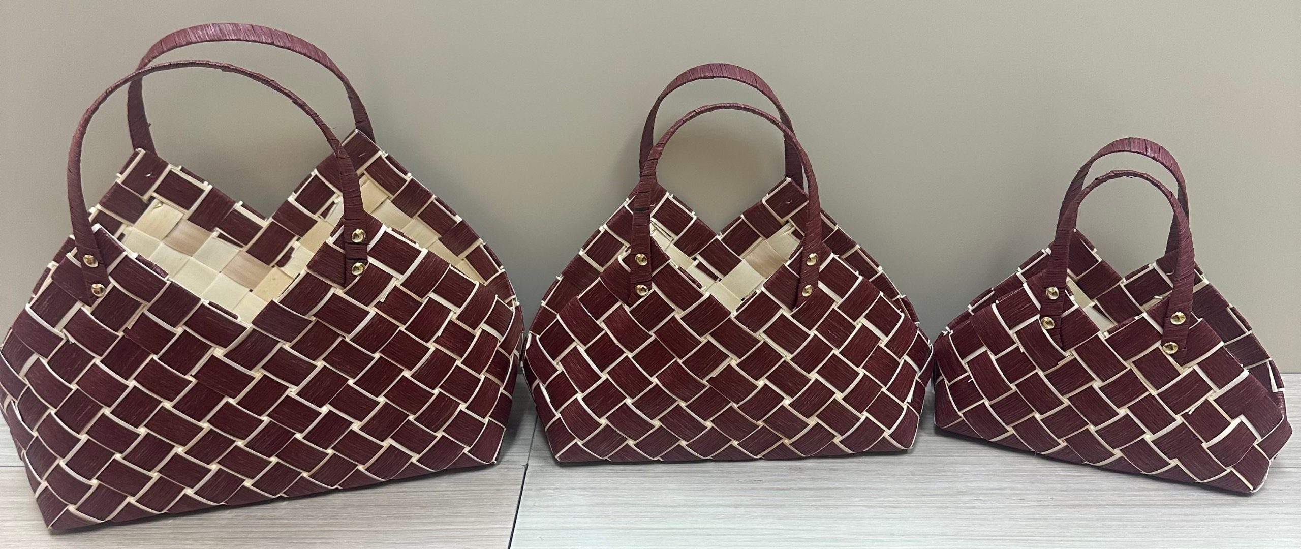 Набор корзин плетеных (секвойя): 40*21*25H 35HH, 34*17*20H 30HH, 27*12*15H 25HH, 3 шт., бургунди