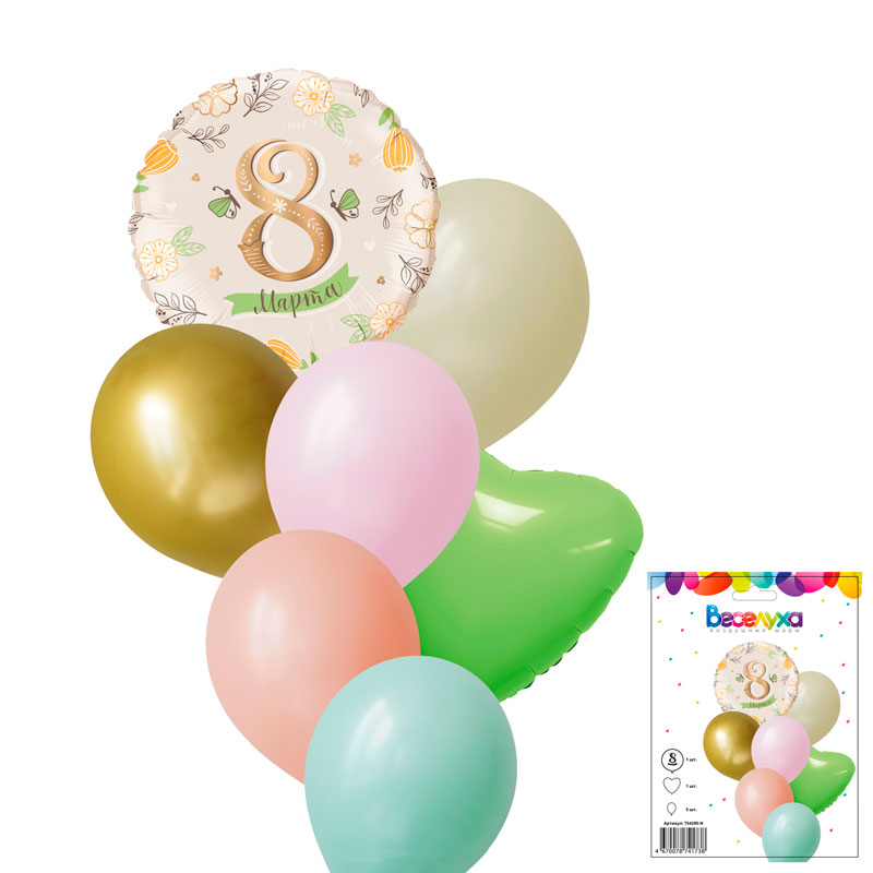 Набор шаров “8 марта” 7 в 1 / 7 воздушных шаров / 1 набор /