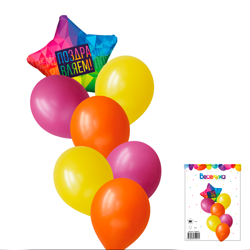 Набор шаров “Поздравляем Яркий” 7 в 1 / 7 воздушных шаров / 1 набор /