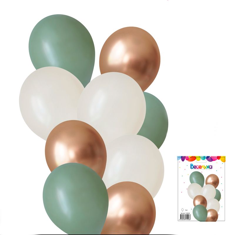 Набор шаров “Эвкалипт и золото” 9 в 1 / 9 воздушных шаров / 1 набор /