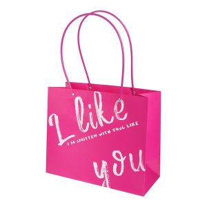 SALE Сумка с пластиковыми ручками “I Like you” 12x12x23cm, 1ШТ, цв. розовый