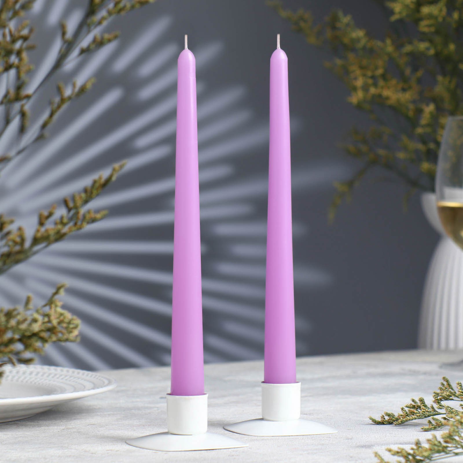 / Набор свечей античных, 2,3х 24,5 см, 5 ч, 55 г, 2 штуки, сиреневый 7690994