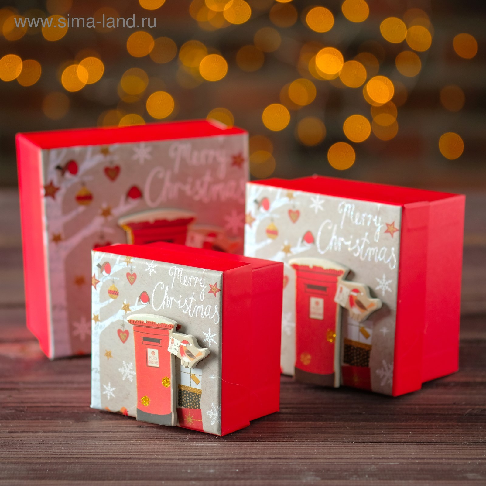 Наборк коробок 3 в 1 «С рождеством!», 13 х 13 х 8 – 9 х 9 х 6 см 4384968