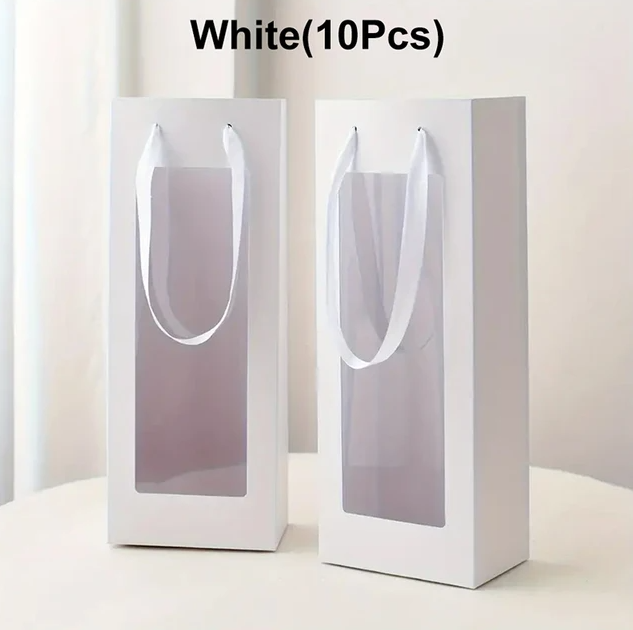 Количество товара Пакет для цветов крафт плотный узкий с окошком и атласными ручками (13*8*35см 10шт.) Розовый