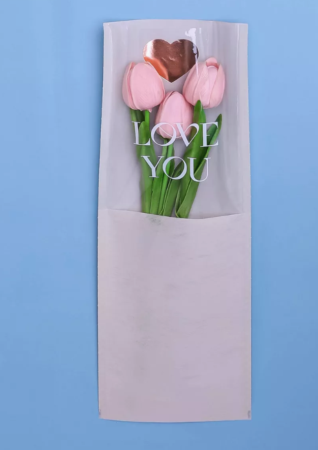 / Пакет для цветов “Love You”, 14*40 см, 10 шт/уп, бежевый