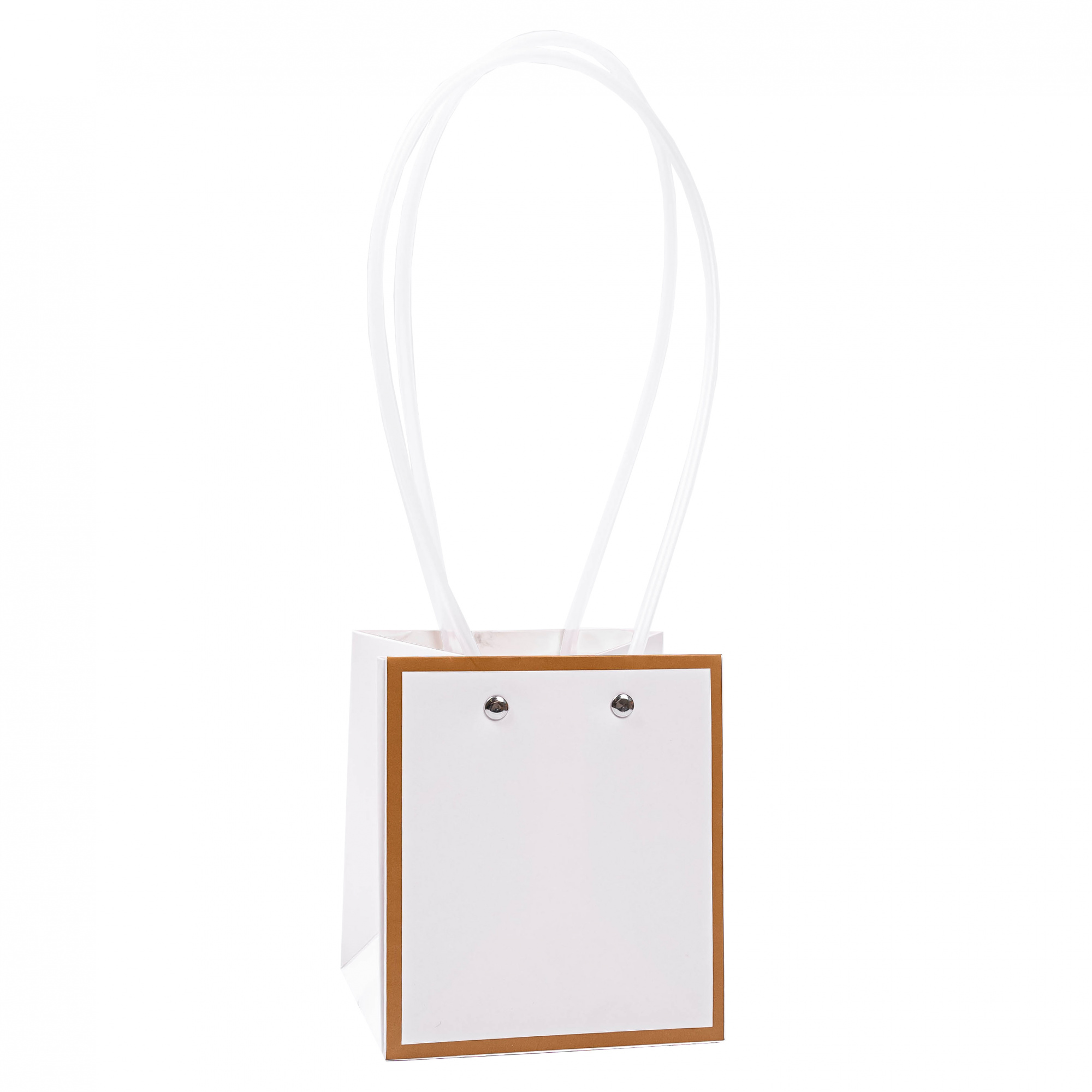 Пакет под цветы 11,5*10,5*13см Квадрат Белый с Золотой каймой и пластиковой ручкой т.м 250