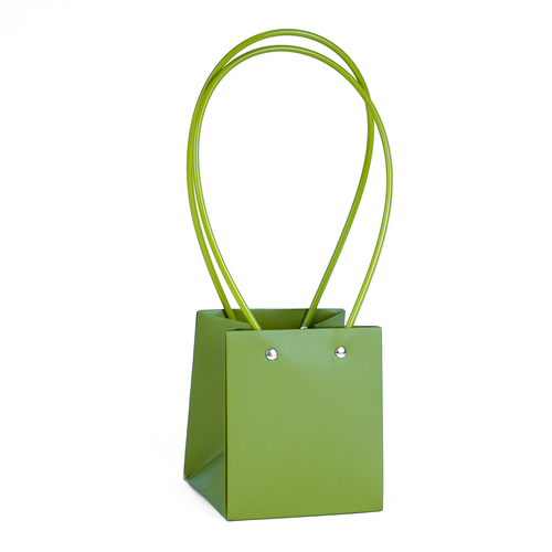 Пакет под цветы 11,5*10,5*13см Квадрат Оливковый с пластиковой ручкой т.м.250