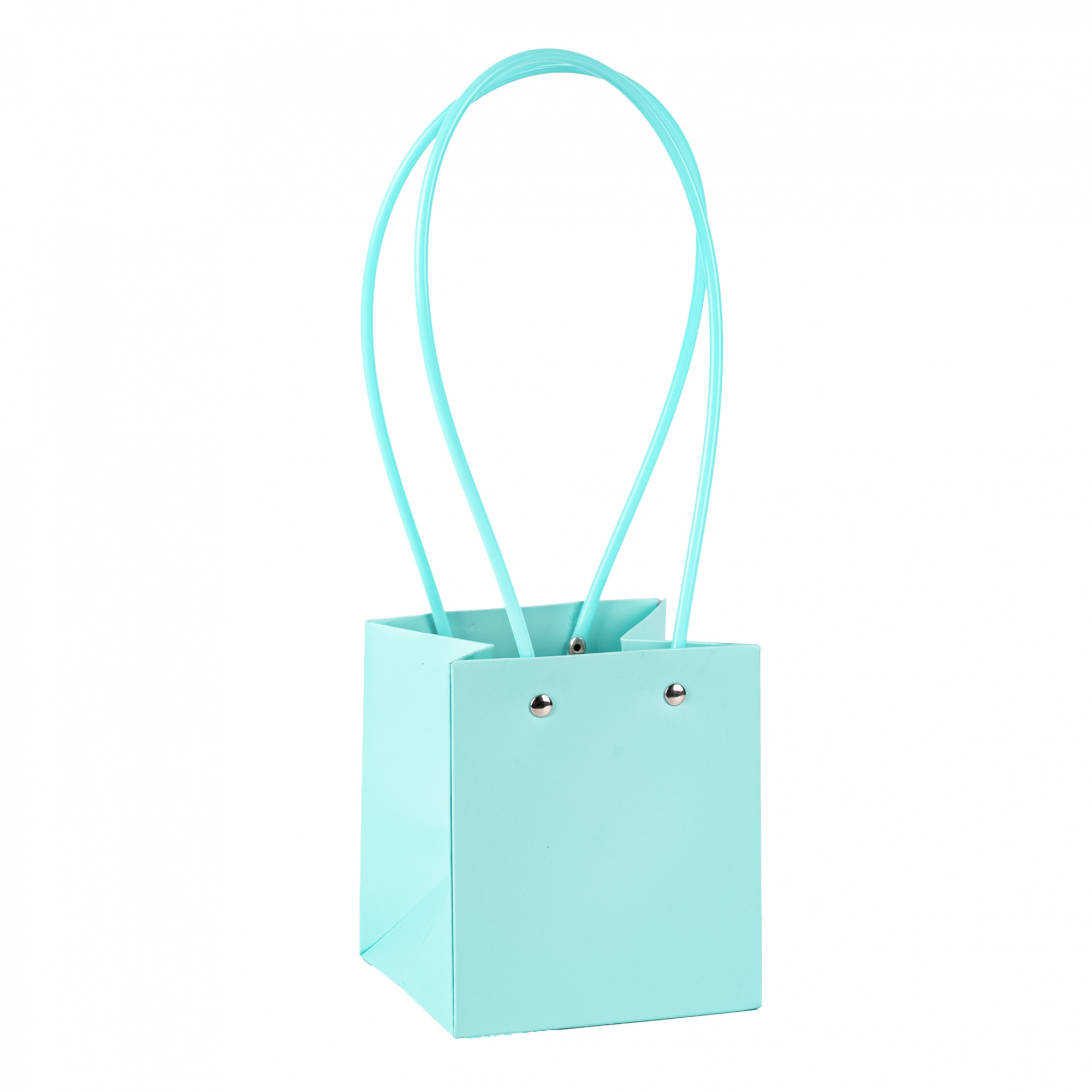 Количество товара Пакет под цветы 11,5*10,5*13см Квадрат Светло-голубой с пластиковой ручкой т.м.10/250