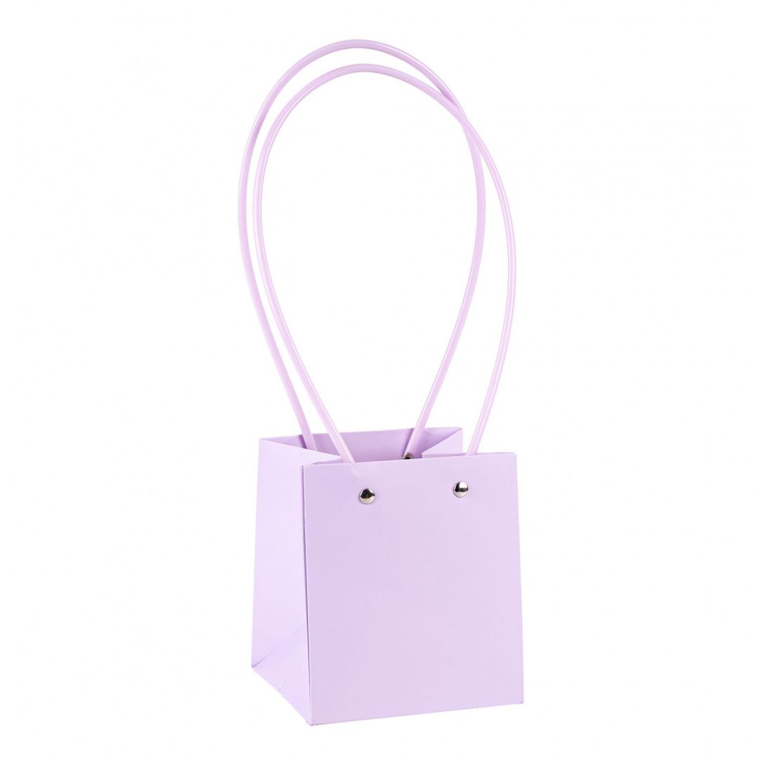 Пакет под цветы 11,5*10,5*13см Квадрат Светло-сиреневый с пластиковой ручкой